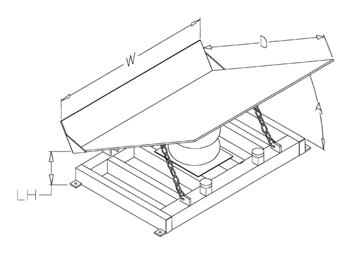 ABTRT MODEL NO. | CAPACITY (Lbs.) | PLATFORM SIZE (Width x Depth) (In.) | MAX. PLATFORM SIZE (Width x Depth) (In.) | LOW'D HEIGHT (LH) (In.) | TILT ANGLE (A) (Degrees) | SHIP WEIGHT (Lbs.) |